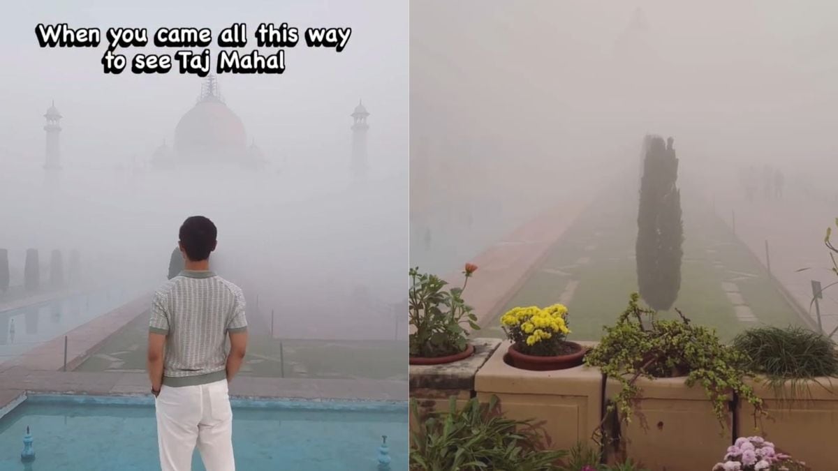 A tourist from the UK was recently left disappointed during his visit to the iconic Taj Mahal in Agra. Han (@hispassport), a vlogger, shared a clip showing the monument almost completely obscured by fog/smog. The famous landscapes framing it were also swathed in white, leaving hardly anything visible. In the caption, the UK traveller wrote, "I travelled all the way to see the Taj Mahal... only for the mist to say 'not today'." In a later comment, he revealed that he had especially woken up early for this activity.
