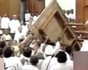 Microphones, chairs and desks were thrown by the Opposition in the Bihar Assembly, in "protest" against a corrupt government. When slippers were hurled at the Speaker on Wednesday, marshals or security guards evicted 17 Opposition MLAs.