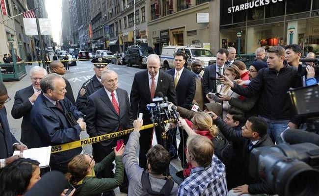 New York Police Commissioner Bill Bratton (second left) and other city officials meet with the news media near the Penn Station following an early morning shooting in Manhattan. (Reuters photo)