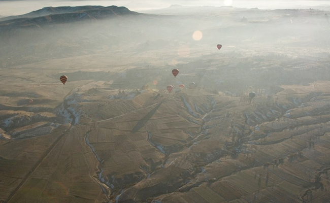 Hot air balloon trips are a key attraction in Cappadocia, which is famous for its ancient troglodyte villages and "fairy chimneys", fashioned out of the rock by millennia of erosion.