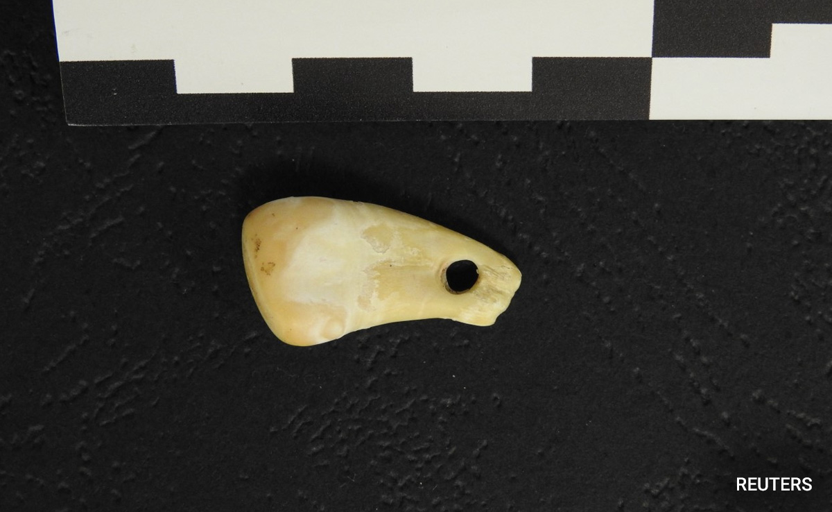Inside a Siberian cave that has been an archeological treasure trove, an elk's canine tooth - pierced to become a pendant - was unearthed by scientists with care to avoid contaminating this intriguing artifact made roughly 20,000 years ago.