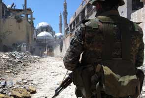 File picture a military personnel in Syria overlooking damaged buildings by air raids