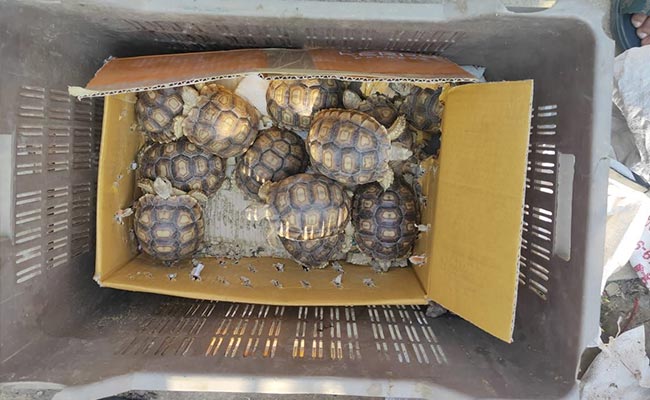 The mobile menagerie, which also included 28 baby tortoises and a marmot, was seized when the Thai Vietjet flight landed at Taipei's Taoyuan airport on Wednesday.