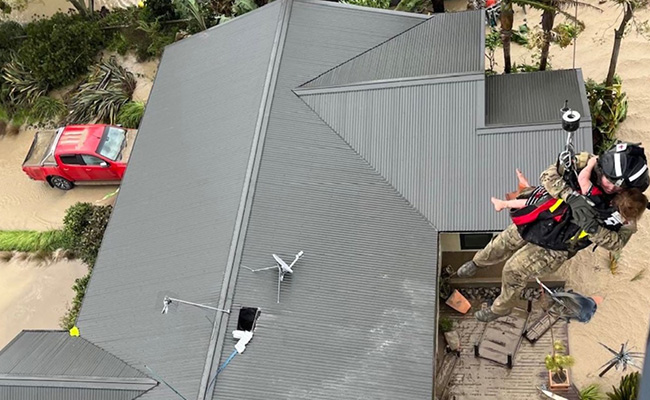 The New Zealand military deployed three NH90 helicopters on reconnaissance and rescue flights to the hard-hit Hawke's Bay area, finding families, pets and workmates clustered on sodden zinc rooftops -- surrounded by a sea of murky debris-filled floodwater.