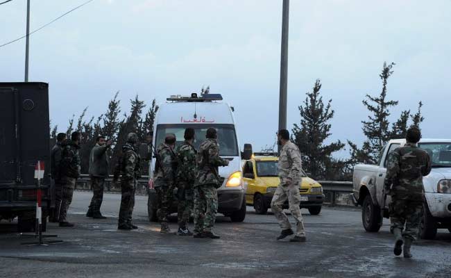 A Syrian red crescent ambulance arrives to evacuate wounded from the area of the Sayyida Zeinab shrine south of Syria's capital Damascus.