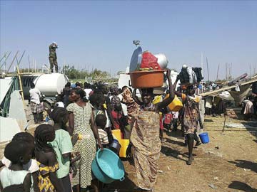Civilians arrive at the compound of the United Nations Mission in the Republic of South Sudan.