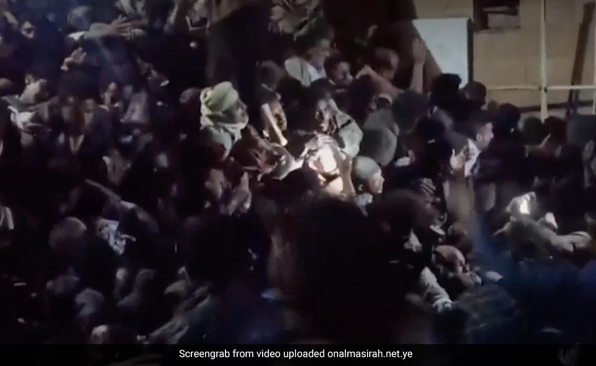 A video broadcast by the Huthi rebel's Al Masirah TV channel showed a cluster of bodies packed together, with people climbing on top of each other to try to make their way through.