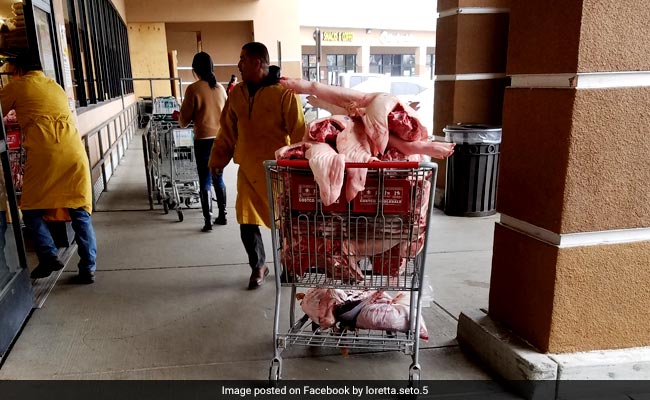- Two men seen pushing carts with unwrapped meat in a Facebook picture