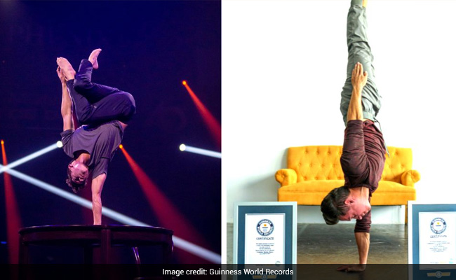 With his extraordinary handstand capabilities, Mexican acrobat Nicolás Montes de Oca has established two new World Records. According to the Guinness World Records, "Mr Oca holds titles for the longest duration to perform a single arm handstand (male), with a handstand measuring one minute and 11.82 seconds, and the longest duration to perform a handstand on a rotating platform (male), with a handstand measuring 25.78 seconds."