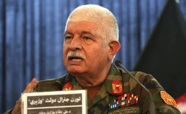 General Dawlat Waziri speaks during a press conference in Kabul.