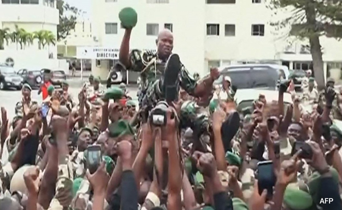TV images later showed the head of the Republican Guard, General Brice Oligui Nguema, being carried in triumph by hundreds of soldiers, to cries of "Oligui president."