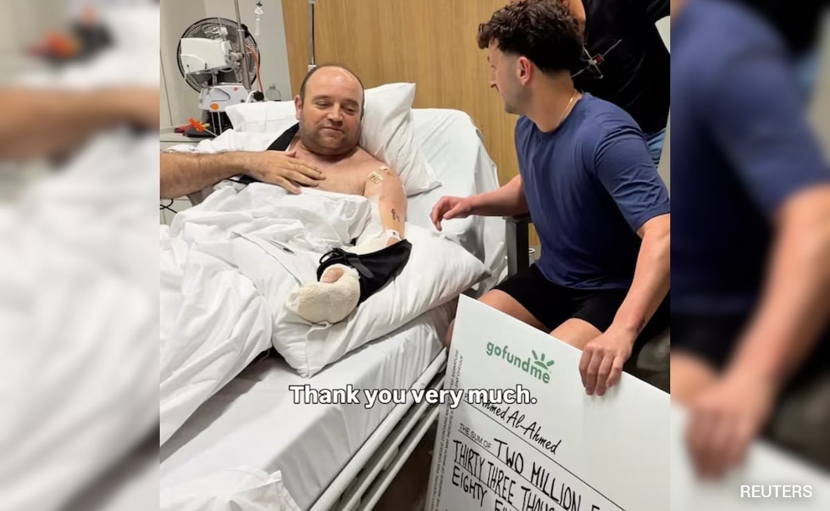 Ahmed, a Muslim father-of-two, was presented with an oversized cheque at his St. George hospital bed by Zachery Dereniowski, a social media influencer and co-organiser of the GoFundMe page, videos posted online showed.
