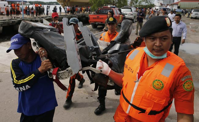 Rescue team members walk as they carry the wreckage of a seat of the AirAsia Flight QZ8501 airliner at Kumai port in Pangkalan Bun, January 19, 2015. (Reuters)