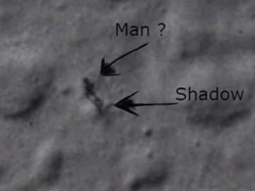 The image shows what looks like a humanoid figure walking along the surface of the moon.