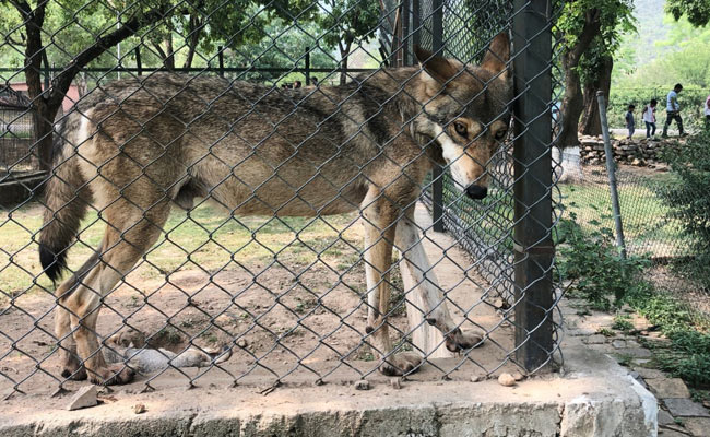 An emaciated wolf rested its head on a block of ice, seeking relief from stifling heat in a zoo in Pakistan's capital, while another gazed at a family enjoying an afternoon picnic as an elephant swayed its head nearby.