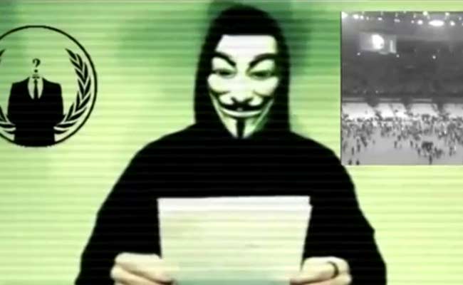 A man wearing a mask associated with Annonymous makes a statement in this still image from a video released on November 16, 2015. (Reuters/Social Media Website via Reuters TV)