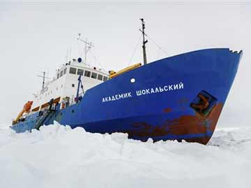 In this image provided by Australasian Antarctic Expedition/Footloose Fotography the Russian ship MV Akademik Shokalskiy is trapped in thick Antarctic ice 1,500 nautical miles south of Hobart, Australia.