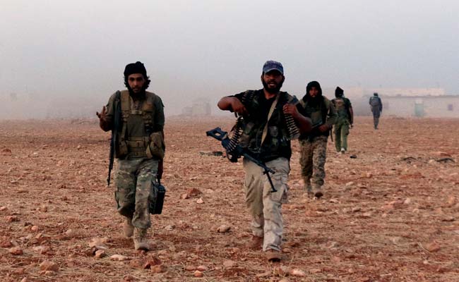 Syrian opposition fighters walk in the Mount Azzan area near Aleppo during fighting against forces loyal to Syrian President Bashar al-Assad. (Agence France-Presse photo)