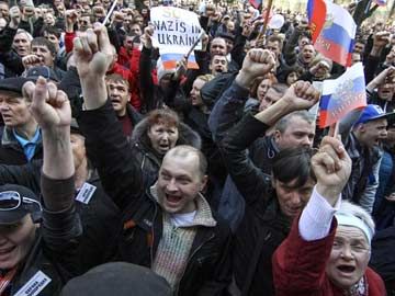 Pro-Russian demonstrators take part in a rally in Donetsk.