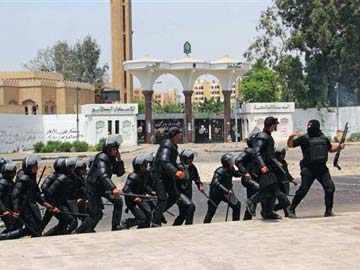 Egyptian riot police move into position during clashes with student protesters at Al-Azhar University in Cairo, Egypt, Friday, May 16, 2014.