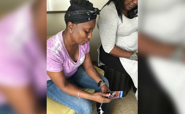 Mina Justice looking at the picture of her son Eddie Justice who got stuck in Pulse nighclub on the night of shooting in Orlando. (AP Photo)