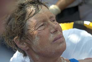 Live television footage showed crowds swarming the beach and even wading toward Nyad as she approached the shore.