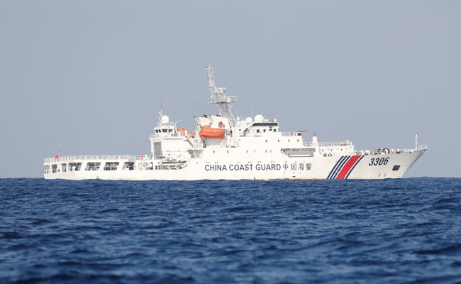 A Chinese Coast Guard vessel patrols at the disputed Scarborough Shoal in the South China Sea