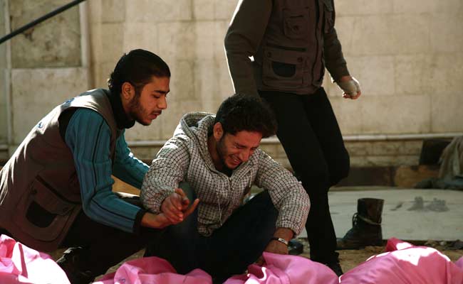 A Syrian man mourns a loved one following a reported airstrike by Syrian government forces on the rebel-held town of Douma, on the eastern edges of the capital Damascus, on October 30, 2015.