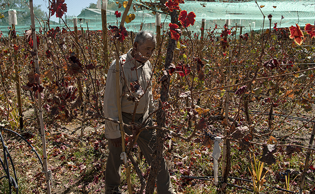 "You have to be dedicated. I water here at night... at three in the morning, eleven at night," he told AFP while caressing his vines, dry and brown two months after the harvest.