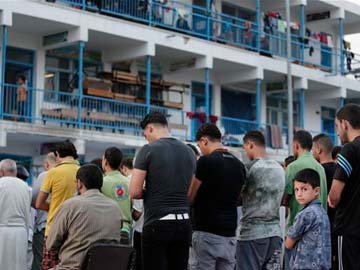 Palestinians pray in the courtyard of a UN school in Gaza City, Monday, July 28, 2014.