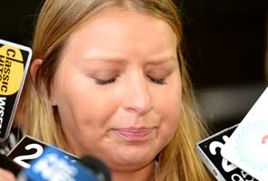 Madeleine Pulver (C) speaks to the media outside of the court in Sydney on November 20, 2012. An investment banker who attached a fake bomb around the neck of Pulver, a Sydney schoolgirl, in a bid to extort money from her wealthy family was jailed for at