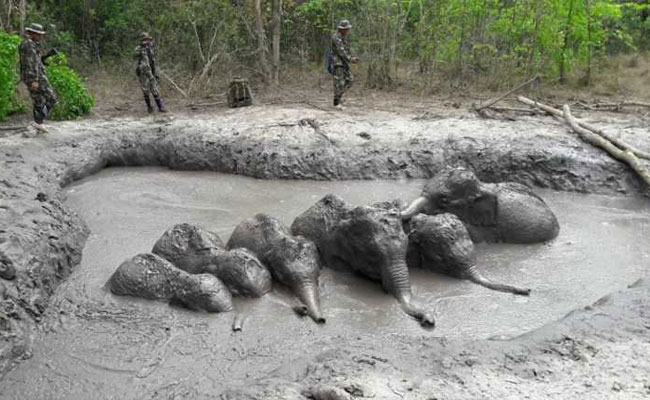 Six baby elephants separated from their parents and trapped in a muddy pit for days have been rescued by park rangers in rural Thailand, officials said Saturday.