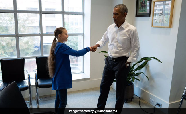 Thunberg, the Swedish 16-year-old whose year-long "school strike for climate" outside her country's parliament has sparked a global youth movement, met with Barack Obama at his office in Washington, D.C., Monday.