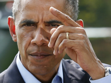 US President Barack Obama gestures as he speaks to the media on the situation in Iraq on the South Lawn of the White House, before his departure for vacation in Martha's Vineyard, in Washington August 9, 2014.