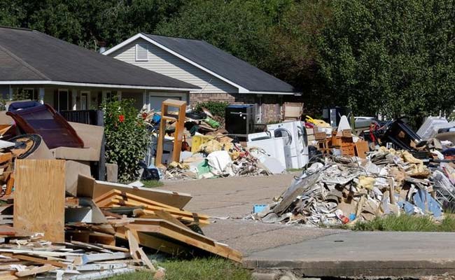 Debris is seen piled up in front of flood damaged homes in Prairieville, Louisiana. (Reuters)