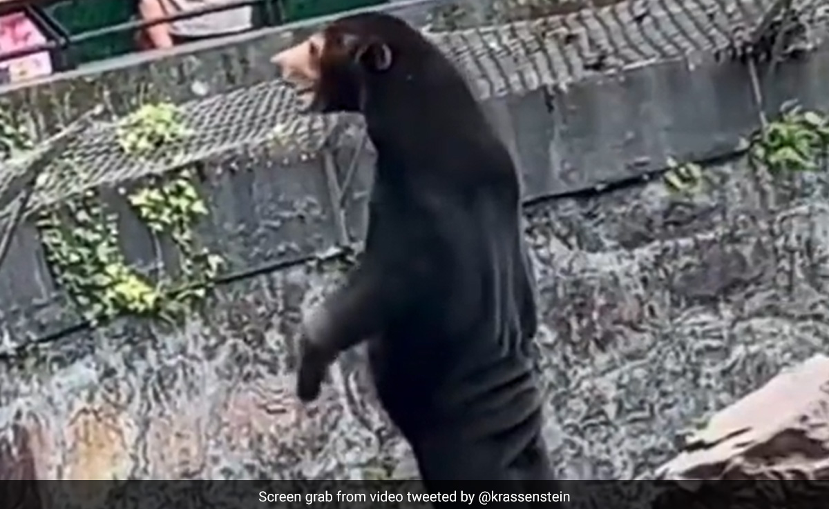 A video clip of a bear rearing up and interacting with a group of people at a zoo in eastern Hangzhou city went viral on Chinese social media.