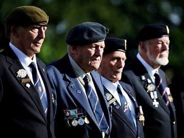 British World War II veterans visit the war cemetery of Ranville, northwestern France, on June 4, 2014.