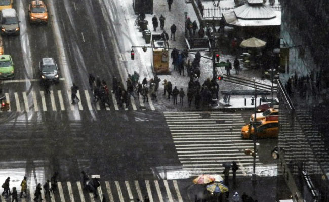 A woman stands bumbled up from the cold outside a bus terminal in Queens, New York. (Reuters)