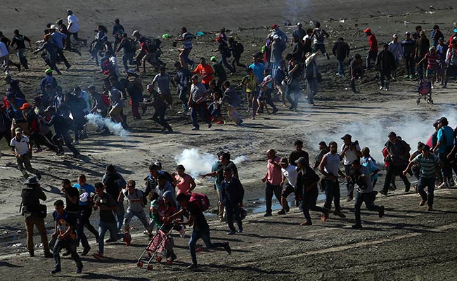 They were among a group of migrants mostly driven back when they tried to rush the border on Sunday from a camp where about 5,000, mostly from Honduras, are staying in hope of eventually becoming US residents.
