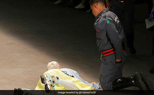 The 26-year-old model fell while turning to leave the runway. Medics immediately attended to him in front of horrified onlookers, according to local media reports.