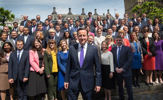 British Prime Minister David Cameron poses with the newly-elected Parliamentarians of his Conservative Party in London. (Agence France-Presse)