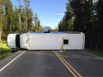 This Thursday, July 10, 2014 photo provided by the Grand Teton National Park shows a bus that flipped on its side.