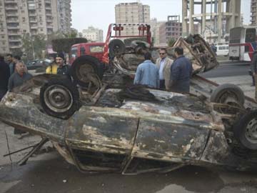 Burnt out cars are removed after being set on fire by Muslim Brotherhood supporters of ousted Egyptian president Mohamed Morsi during clashes with police in Nasr city district, in Cairo, on January 8, 2014