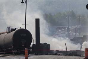 Firefighters are still working to douse blazes in at least two of the train cars that crashed, delaying search operations in downtown Lac-Megantic, where the spectacular crash saw flames shoot into the sky around 1:20 am (0520 GMT) Saturday.