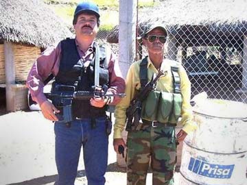 Joaquin Guzman (L), the leader of Mexico's Sinaloa drug cartel, is seen next to an unidentified man in this undated handout photo found after a raid on a ranch, released to Reuters on January 18, 2011.