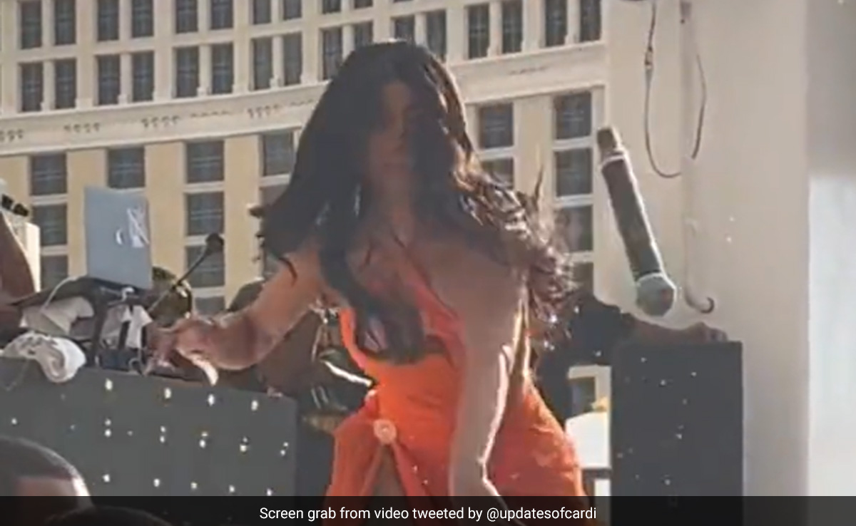 In the clips, Cardi B can be seen pausing briefly, before flinging the microphone back in the same direction.
