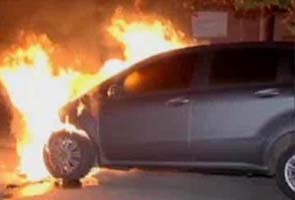 According to police reports, four parked cars were set on fire at different locations in the city, and a further two were damaged.