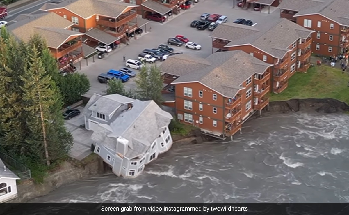 A two-storey house in Alaska collapsed into Mendenhall River after record glacial flooding in the city. The video shows the house being swept away by the raging river.