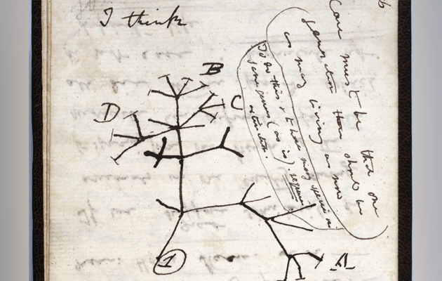 In one book, he drew a diagram showing several possibilities for the evolution of a species and later published a more developed illustration in his 1859 book "On the Origin of Species".