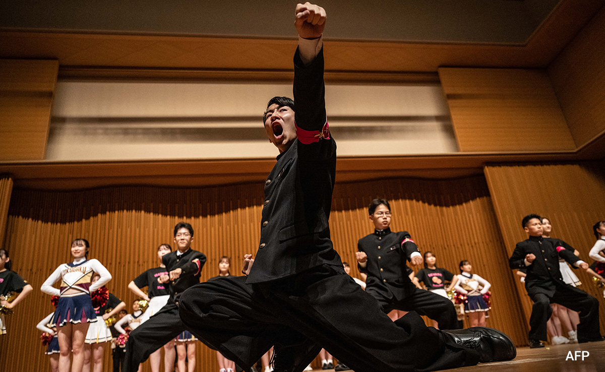 They are drenched in sweat, their hands bloodied from clapping, and their voices hoarse from shouting -- meet Japan's predominantly male and unashamedly macho "leadership section" cheerleaders.